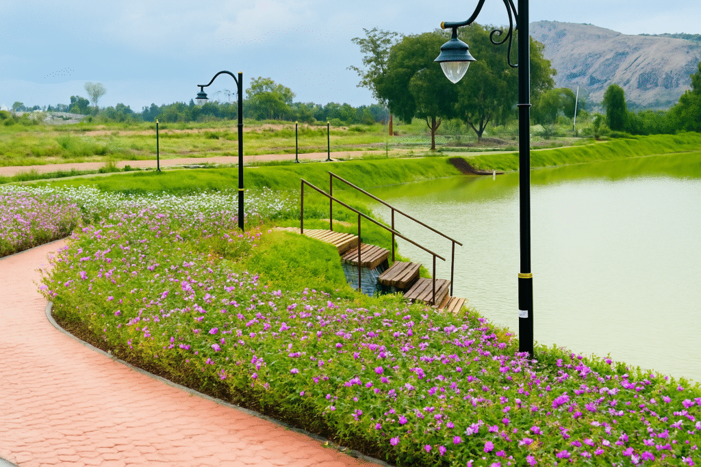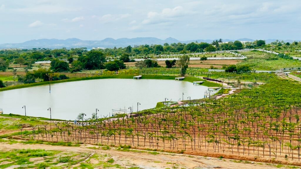 Welcome to “Rhythms of Earth,” a sanctuary designed around the principles of ‘Eco-Urbanity.’ Located near the Isha Foundation in Chikkabalapura, this gated community offers more than just a home; it’s a lifestyle rooted in eco-conscious living. As a managed farm plot, it serves as an antidote to urban stress, providing a space to unwind and recalibrate.